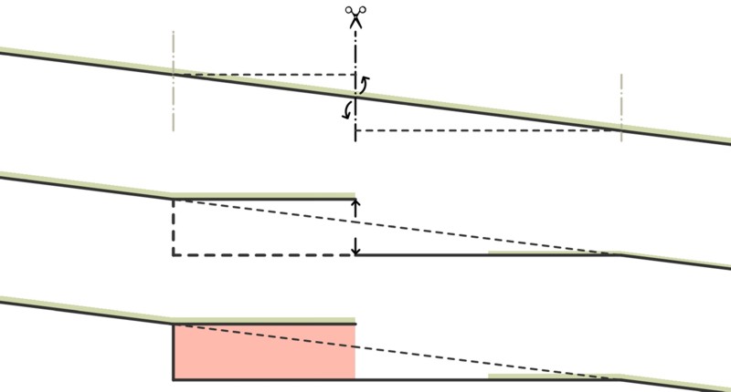 Die Verfasser überraschen mit einem radikalen Konzept. Die Topographie des Grundstücks nutzend wird das Baukörpervolumen in den Hangverlauf eingeschoben.