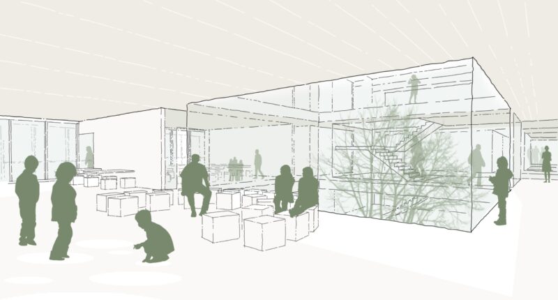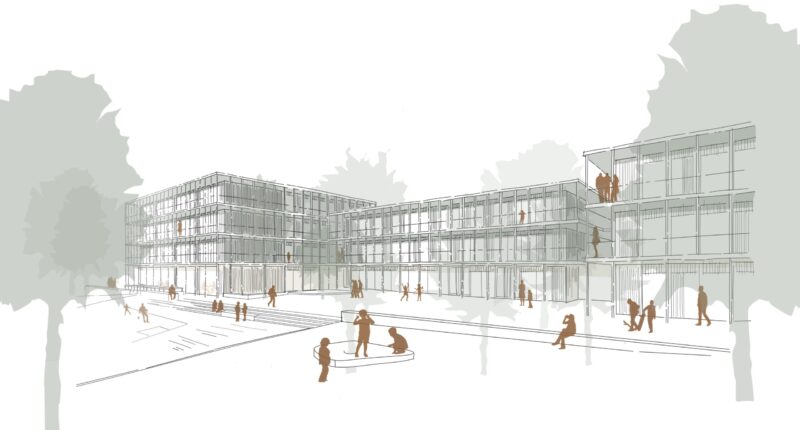 Zusammenfassend besticht der Entwurf mit einer selbstverständlichen Integration in das Baufeld und seinen gut proportionierten Außenräumen. Mit seiner überzeugenden inneren Struktur und Raumbildung bewegt sich die Architektur auf Augenhöhe mit den Schülern und bietet ein lebendiges Schulleben mit vielfältigen Begegnungsräumen.
