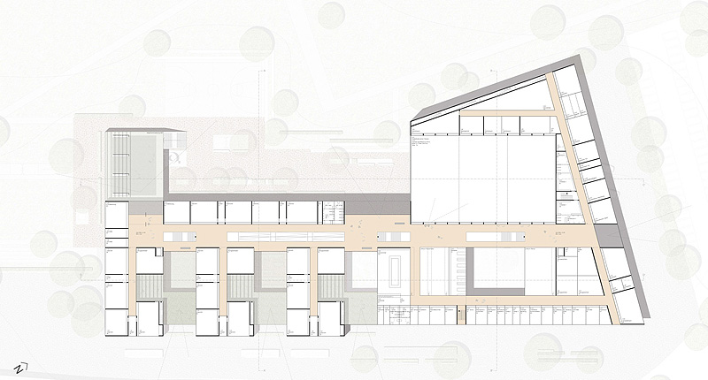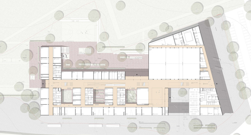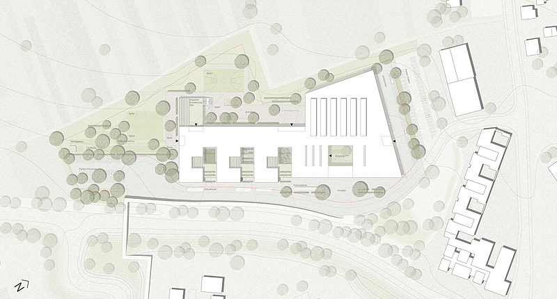Der Entwurf sieht einen Schulbau vor, der alle Funktionsbereiche „unter einem Dach“ und in einem Baukörper vereint. Dem Inklusionscharakter wird prinzipiell durch diese Raumbildung in besonderer Weise Rechnung getragen.
